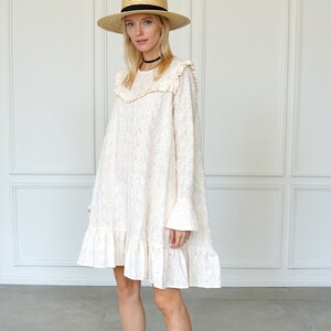 White Cotton Dress Drop Waist Etsy